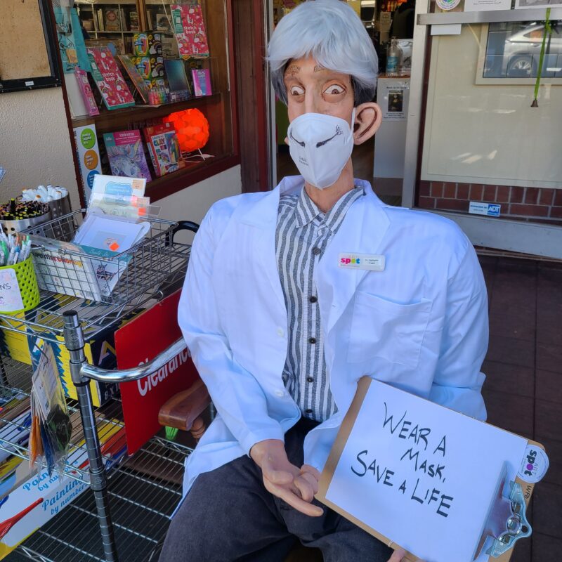 Scarecrow Salvador is dressed up as Dr. Fauci! Be sure to wear your mask this Halloween season!