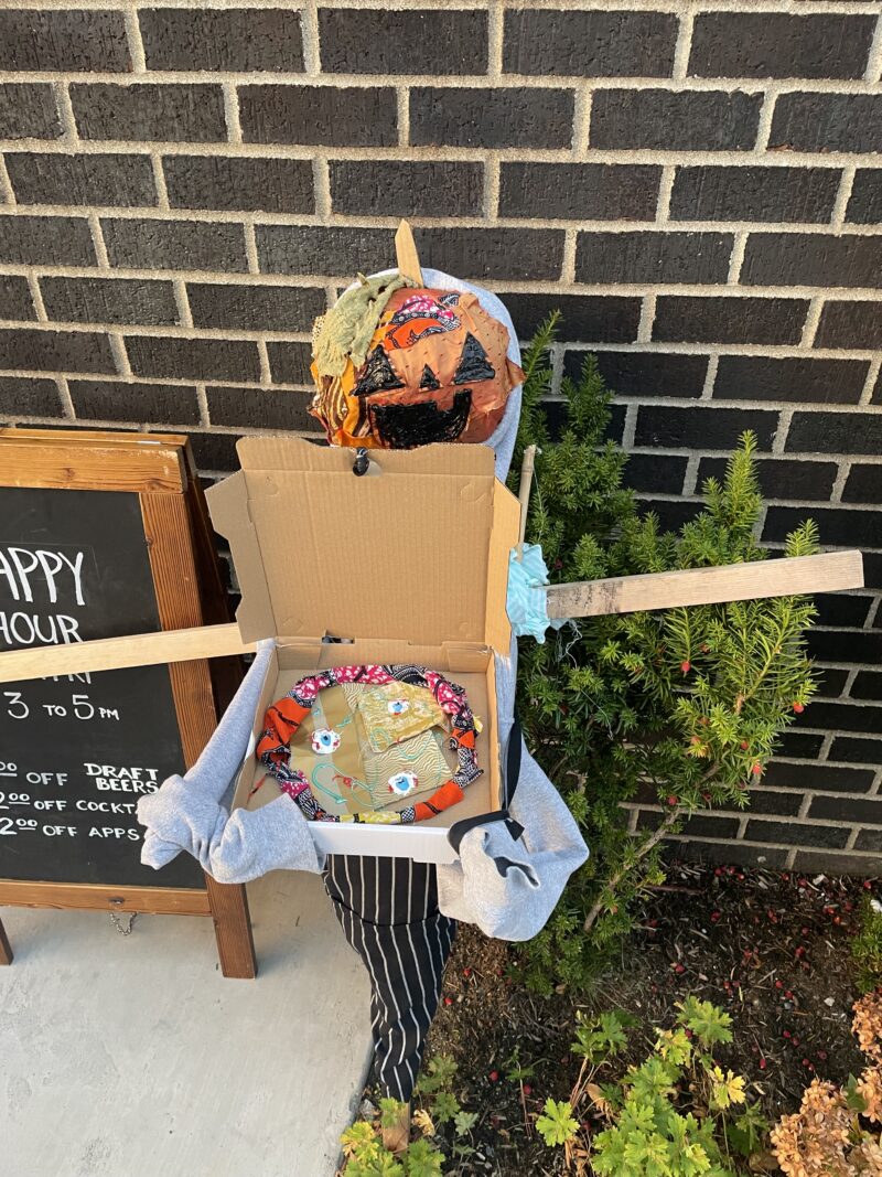 Just a little guy givin a spooky pizza