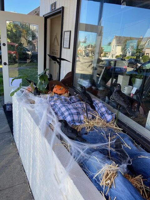 This poor scarecrow didn’t see the murder of crows coming! Mr. Scarecrow should’ve known better than to set up his pumpkin patch at Crow boutique on 4th ave.