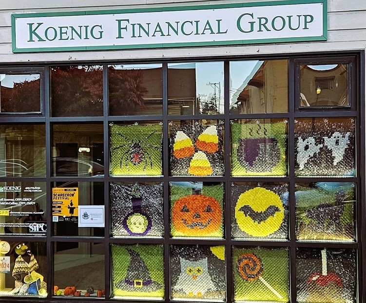 Koenig Financial Group's display this year features a friendly witch happily crocheting away along with 12 crocheted squares each featuring a Halloween themed image. Each square is 22"x22" and was created with Pine & Cauldron yarn using a technique called Corner to Corner (C2C). Just like Bowser from last year and the Adams Family from 2 years ago, Sarah Chaddick is the mastermind and crochet-artist-extraordinaire of this magnificent piece! Read more