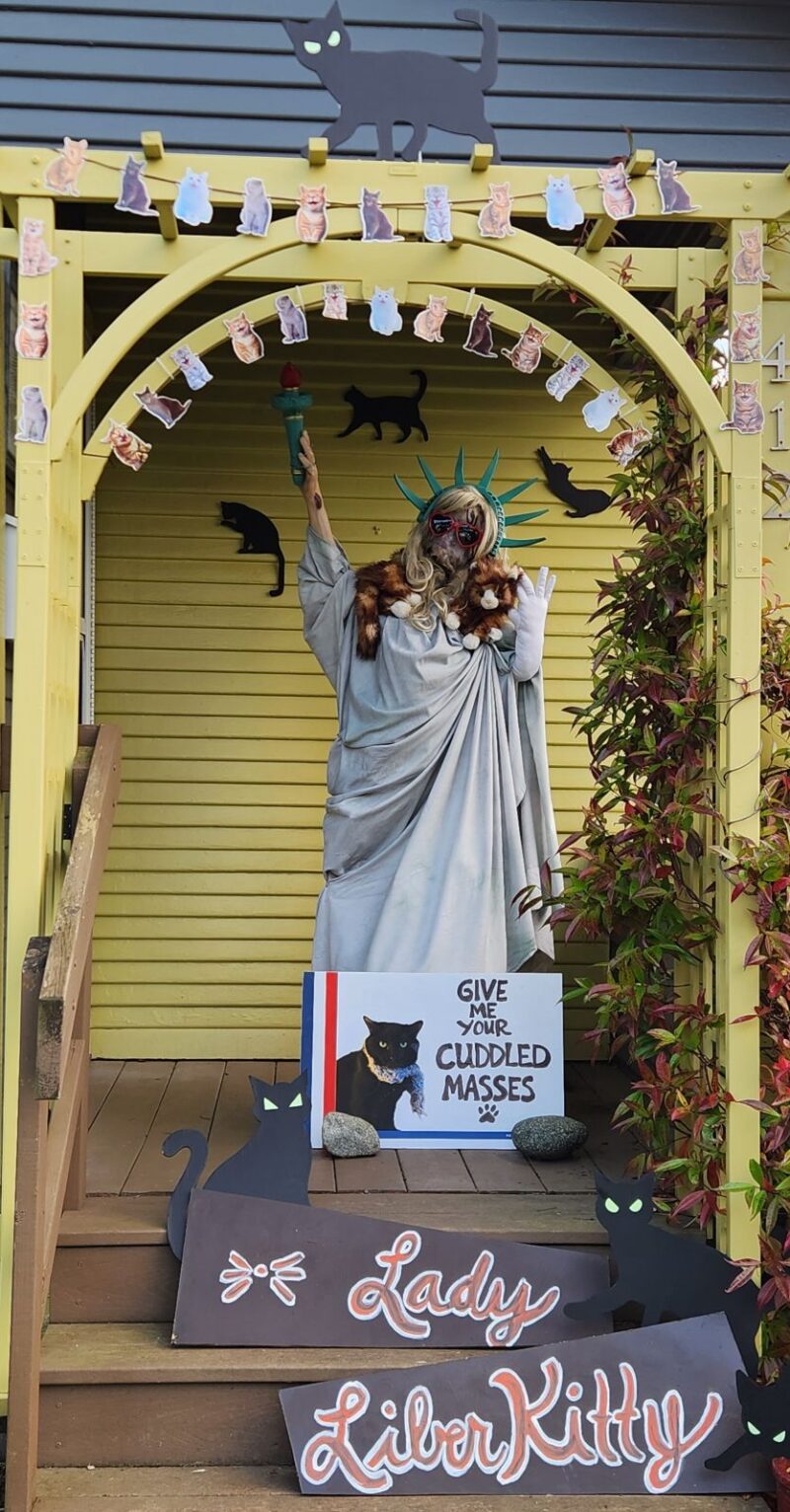 America's OG Cat Lady, Lady LiberKitty, stands as a warrior like her namesake, the Goddess, Liberty, and shares her call to action: A mighty woman with a torch, whose flame Is unfulfilled possibility, and her cat, the Instigator of fear. From her beacon-hand Glows a feline challenge... 'Keep, ancient minds, your storied pomp!' cries she With silent lips. 'Give me your clever, your courageous, Your cuddled masses purring to breathe free. Read more